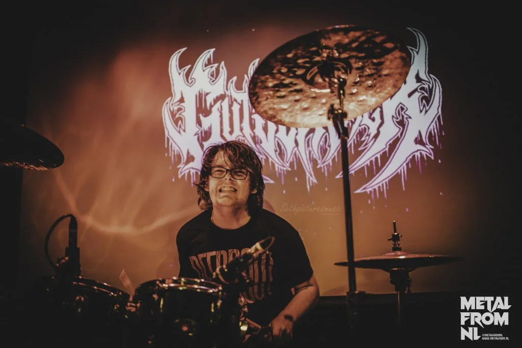 Colin: Wij zijn Gutslasher, we spelen oldschool death metal. Ik ben Colin en ik ben de drummer.