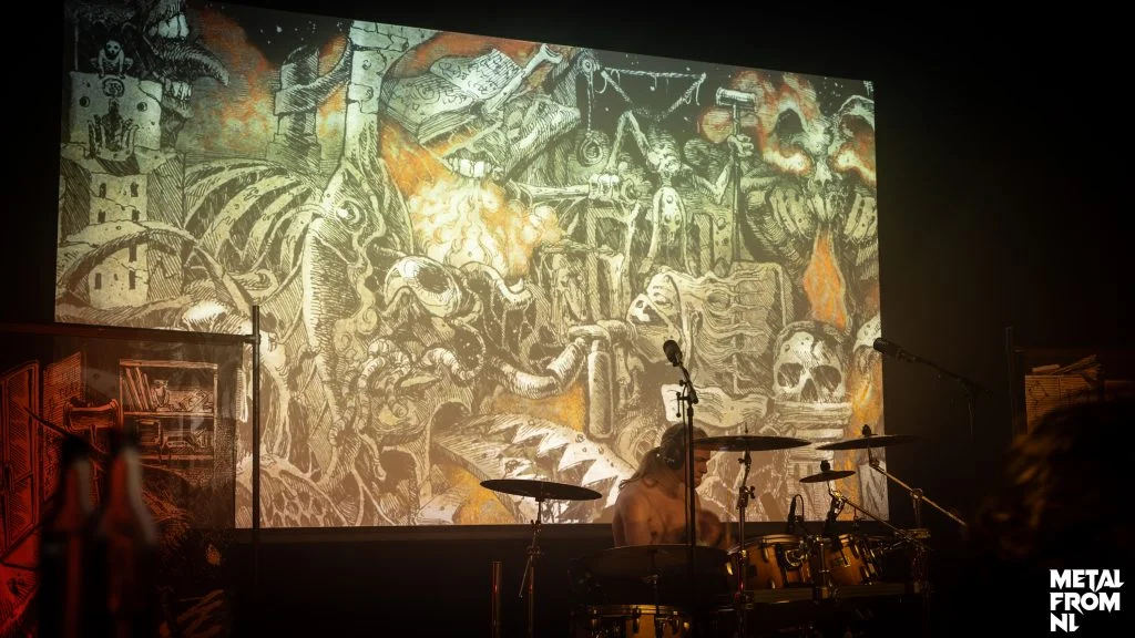 Overigens, als je dat nog niet gezien hebt: de band heeft artwork laten maken per track en heeft dit uitgebracht in een boek. Ik ben heel erg fan van deze stijl, en zeker nu ze zo groot achter de band geprojecteerd werden kan ik het alleen nog maar meer waarderen.
