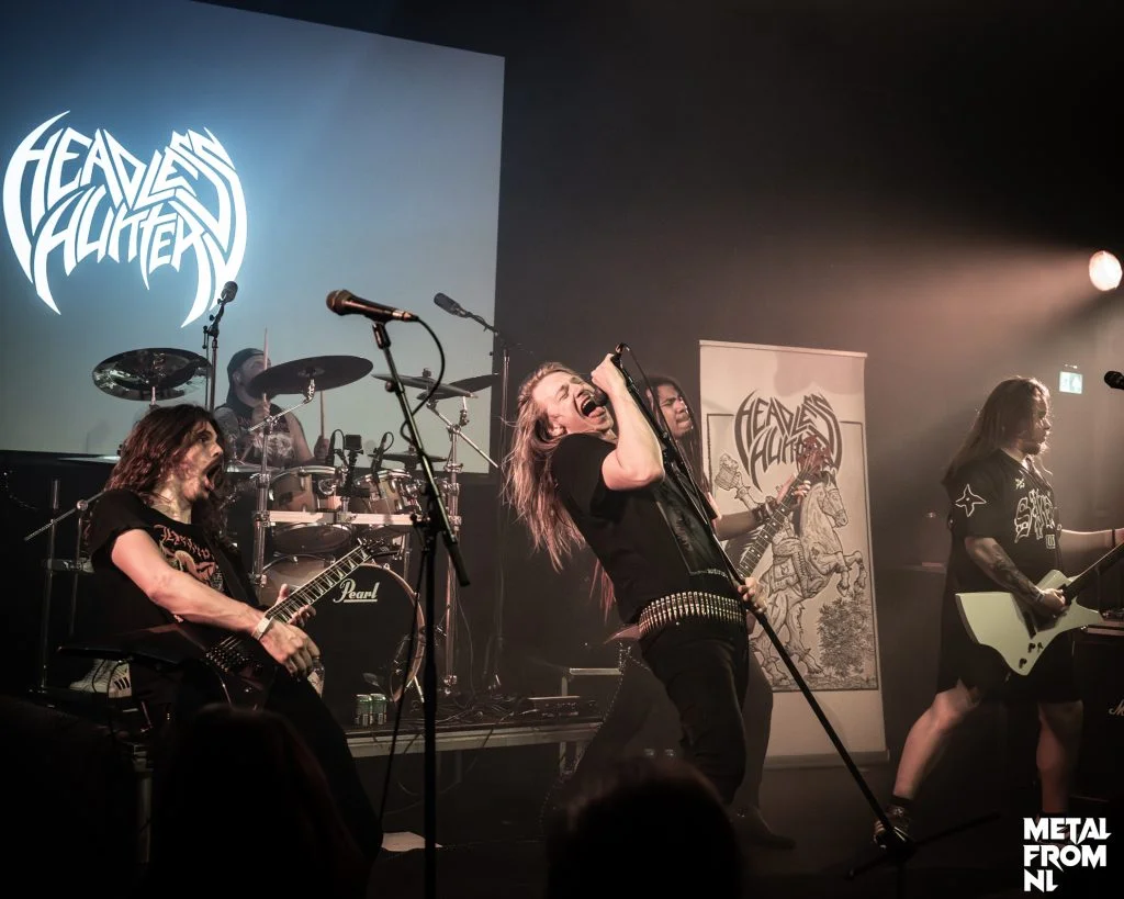 Dit is een band met super veel humor. Past natuurlijk ook een beetje bij het genre, maar met liedjes over Jenga genaamt Towers of Terro, of een liedje over het feit dat hun bassist stoned is, kan je toch alleen maar heel hard lachen. En moshen. Want Headless Hunter heeft dan geen hele serieuze teksten, ze hebben wel hele serieuze Trash metal. Het publiek moet nog een beetje in de juiste stemming komen lijkt het, maar uiteindelijk gaat de moshpit die bij Grandad gestart was, hier gewoon verder. Ter ere van de Metal Jam, een begrip hier in de omgeving van Zaandam, speelt de band ook hun nieuwste track ‘The Metal Jam’. Een betere promo voor je event is er niet, en het bewijst maar weer wat een leuke mensen de bandleden van Headless Hunter zijn :-)