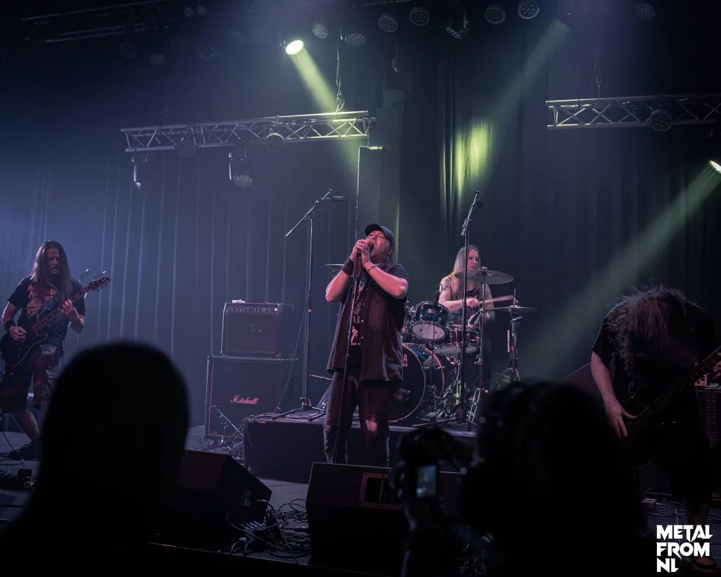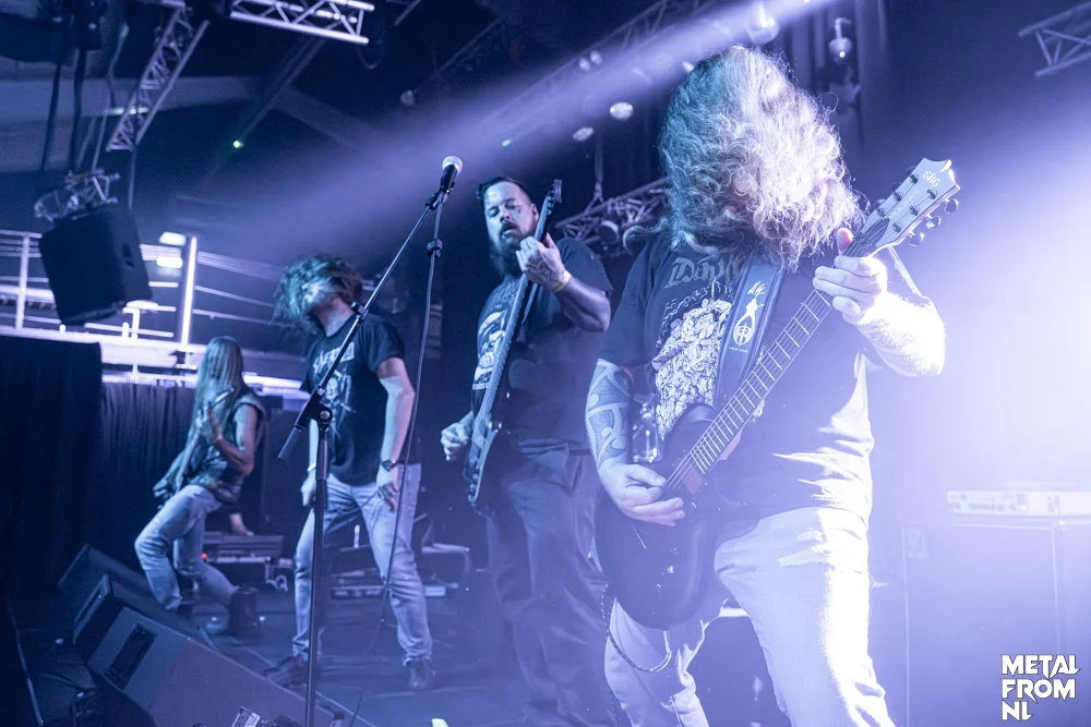 Mordkaul is de Vlaamse band van vanavond, en het is duidelijk dat ze al heel wat podia versleten hebben. Helaas voor de band krijgen ze de meegebrachte lichtshow niet aan de praat, en loopt de avond daardoor ook direct uit. De band is hier in de regio waarschijnlijk minder bekend dan de voorgaande bands, en dat betekent dat ze het met de ‘Dutch Decease” moeten doen. Nederlands staan stil, en bewegen hooguit met hun hoofd, om aan te geven dat ze je muziek tof vinden. Tenzij ze je kennen, want dan is het pitten vanaf het eerste moment. Het lijkt voor de band weinig uit te maken; ze zetten een hele professionele show neer, met glorious headbanging van de bassist. Gaandeweg de set zien we steeds meer telefoons verschijnen die het optreden van de Vlamingen vastleggen; het wordt wel degelijk gewaardeerd! Terecht ook; het geluid is super goed, de nummers zijn sterk, zeker wanneer we bij The Widow Black wat Oosterse invloeden terughoren. De band komt binnenkort met een nieuw album, daarvan spelen ze vanavond alvast de title track. Wat precies de titel was, ben ik helaas vergeten op te schrijven, maar dat ik het een vette track vond, was zeker!